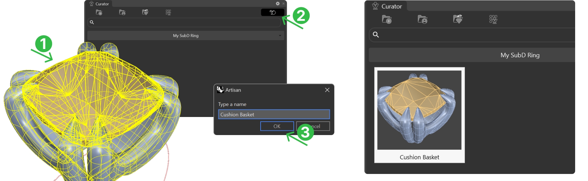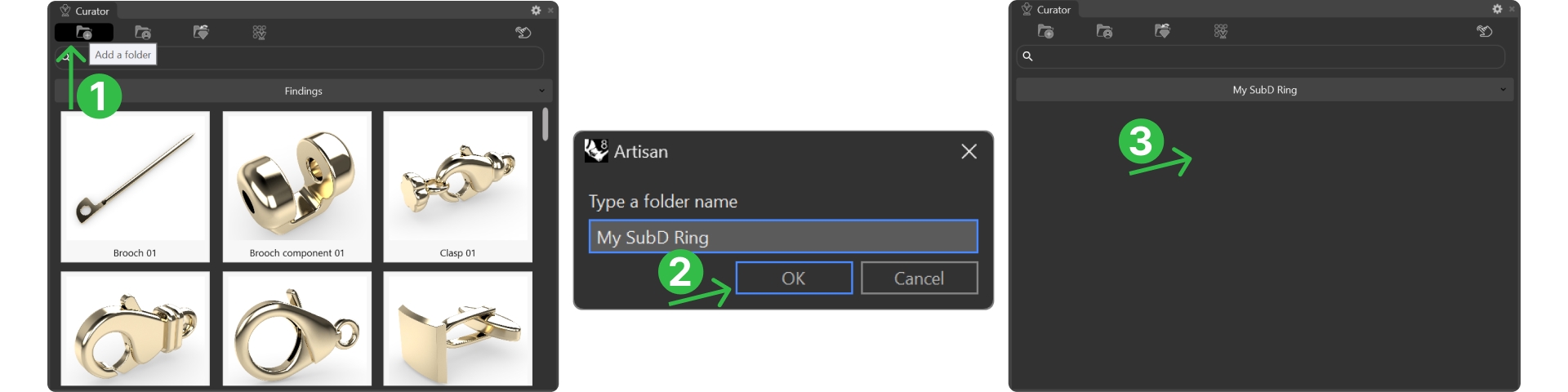 In the file tab (1), Open the Curator Panel (2).