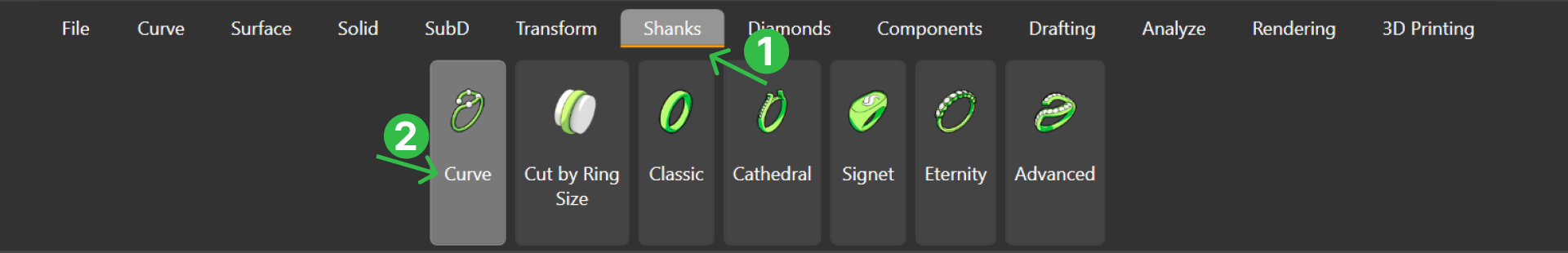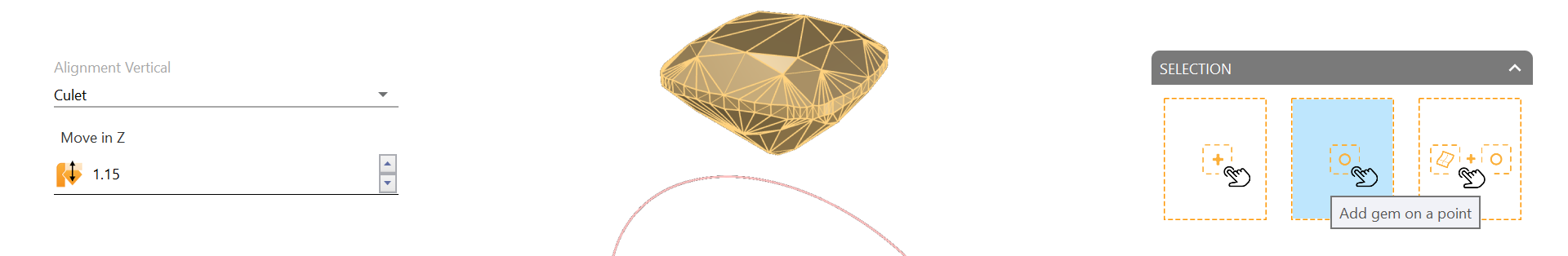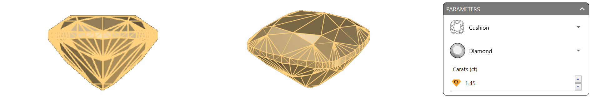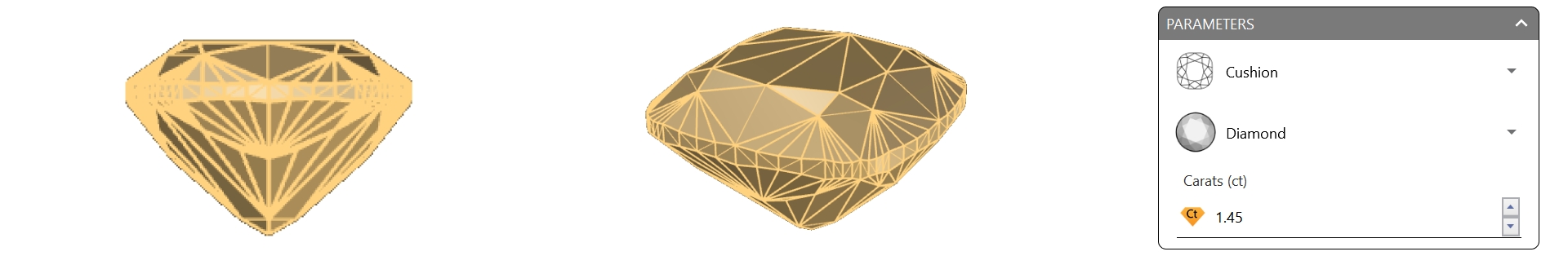 Define the base curve for the cushion basket in the USA region with a size of 6.5. Add a cushion-shaped gem of 1.45 carats and align it properly on the curve