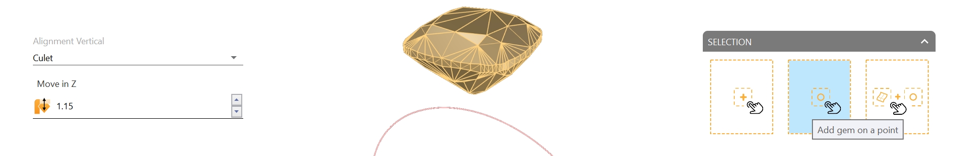 Use the Add Gem to Point option and place the gem at the top of the previously created curve.