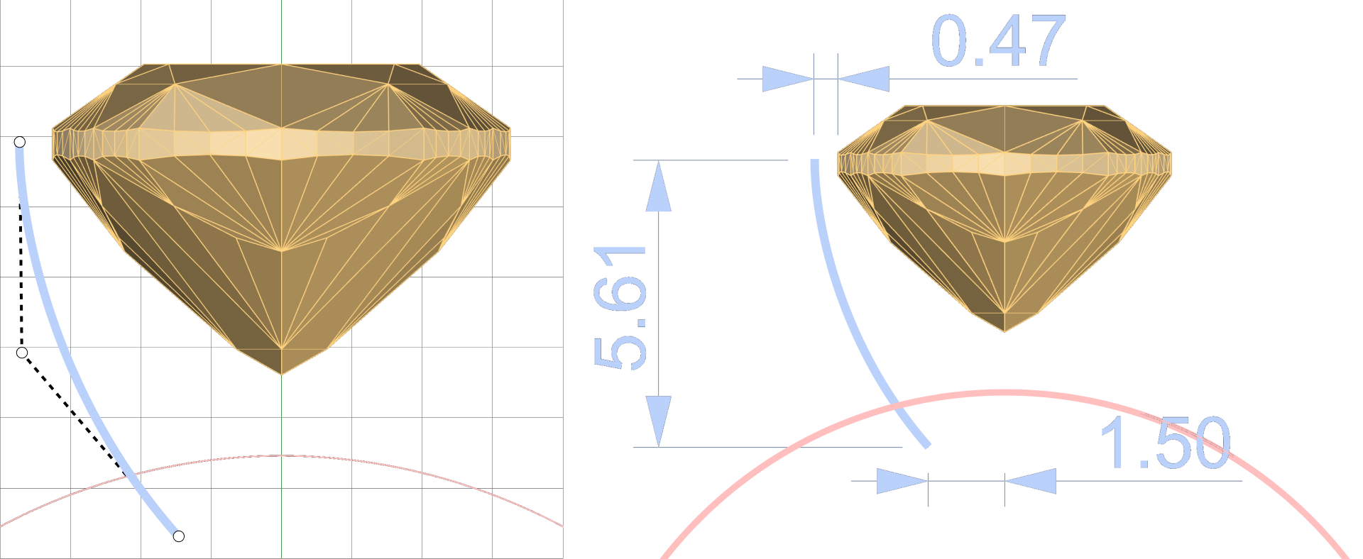 First point: Click slightly to the left of the gem's fillet.