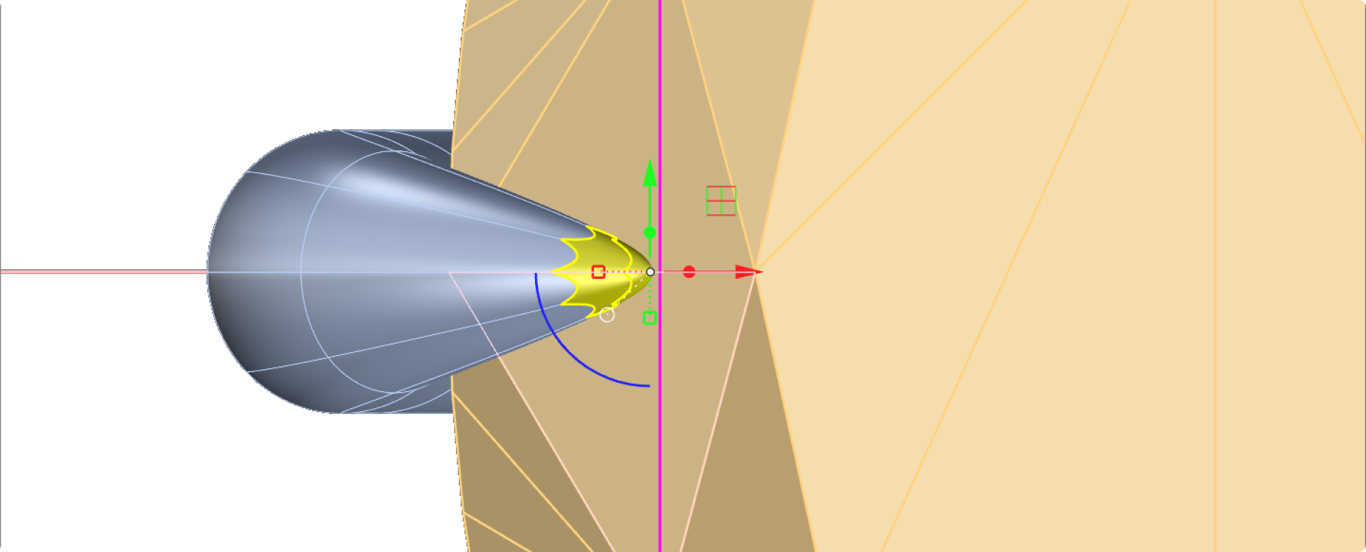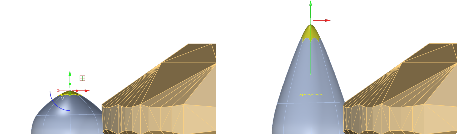 In the Front View, move the selection upward to form a tapered tip.