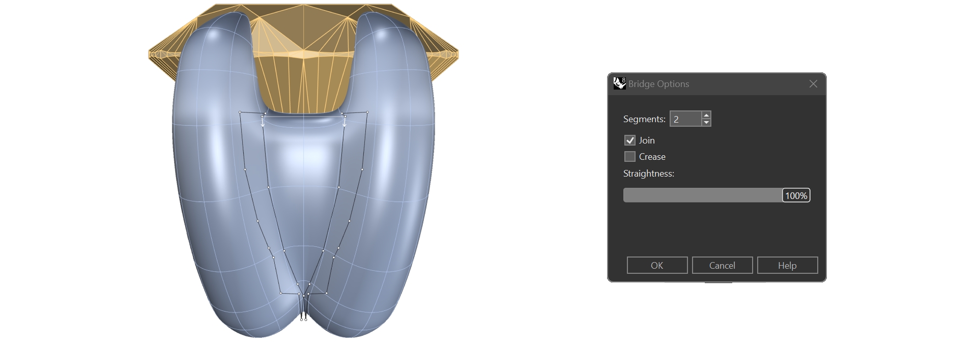 Use Ctrl + Shift to select the top point of the bridge and its edges. Lower the selection slightly to create an arch.