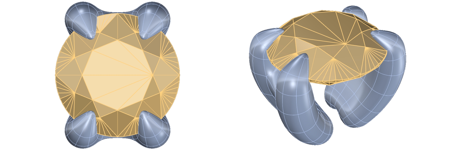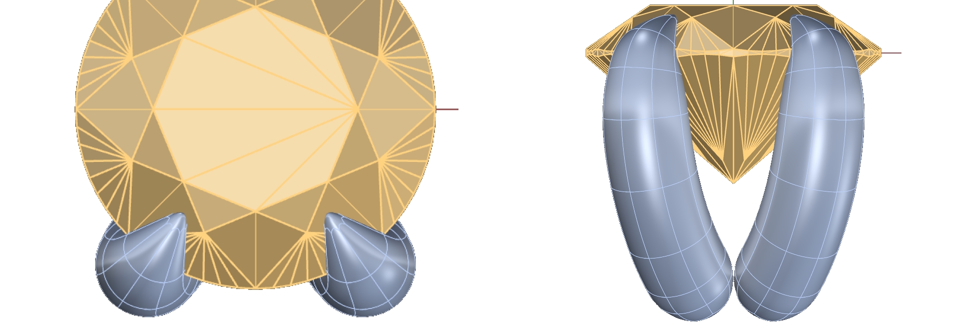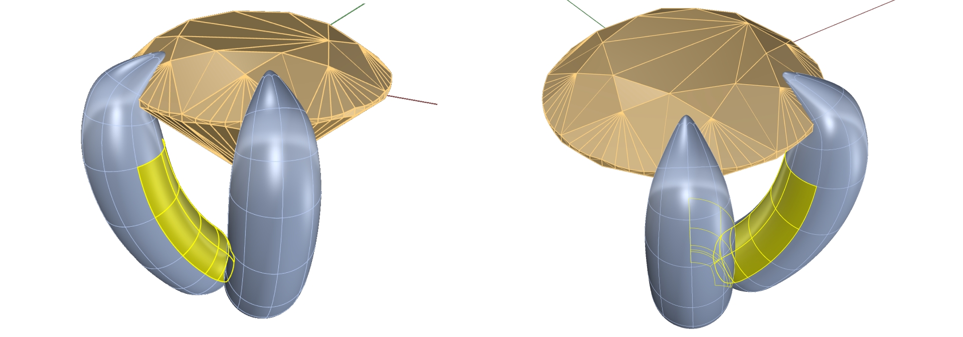 Select the 10 bottom faces of one prong and its corresponding faces on the mirrored prong.