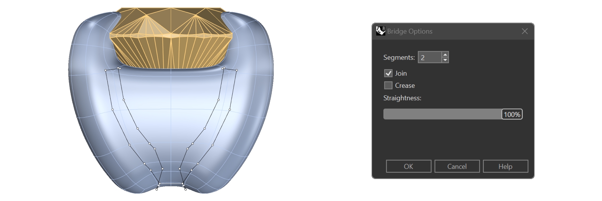 As we did earlier, we will lower the centers of the bridge. To do this: