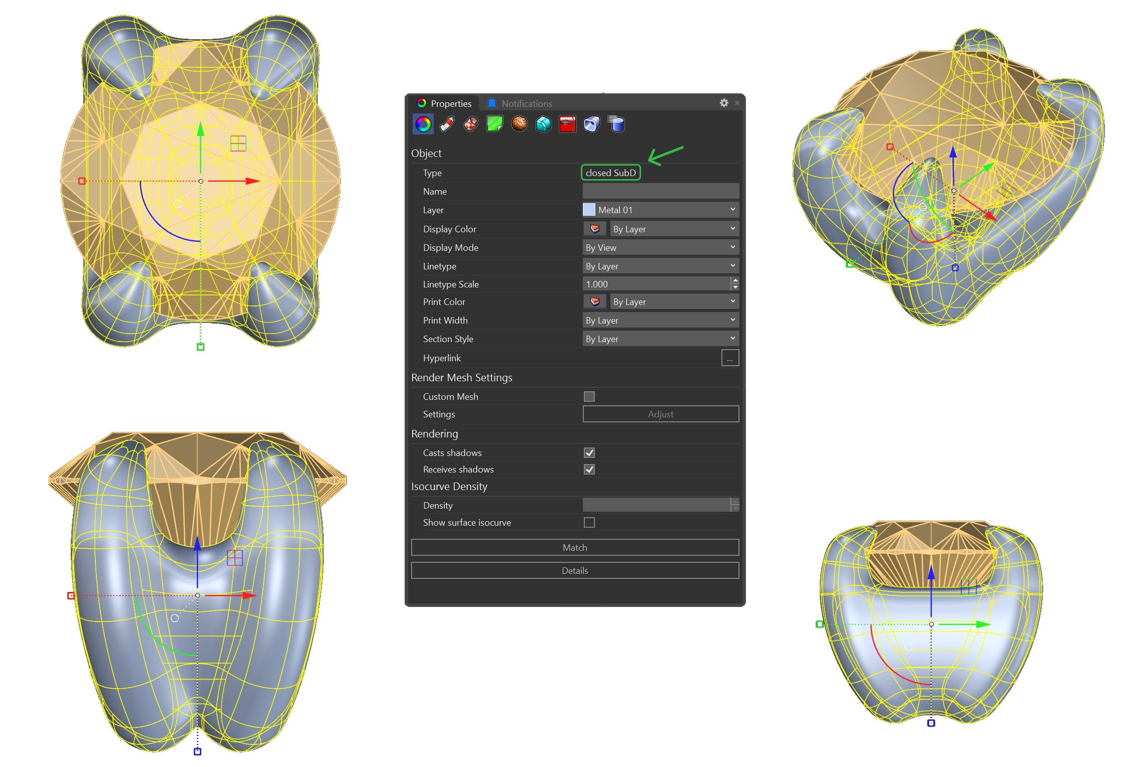 We select the basket and press F3 to view its properties. As we can see, it is a closed SubD. With this, we have finished our second basket.