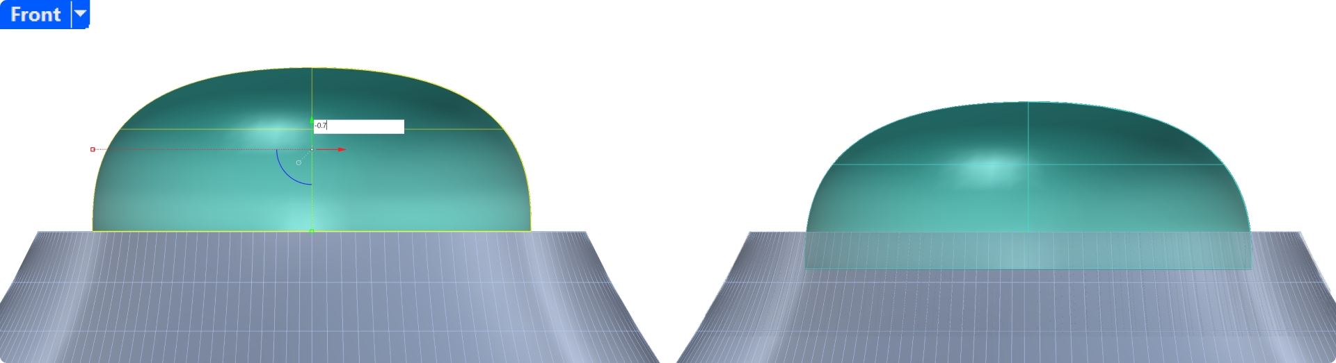 In the front view, use the gumball to move the cabochon 0.7 mm down.