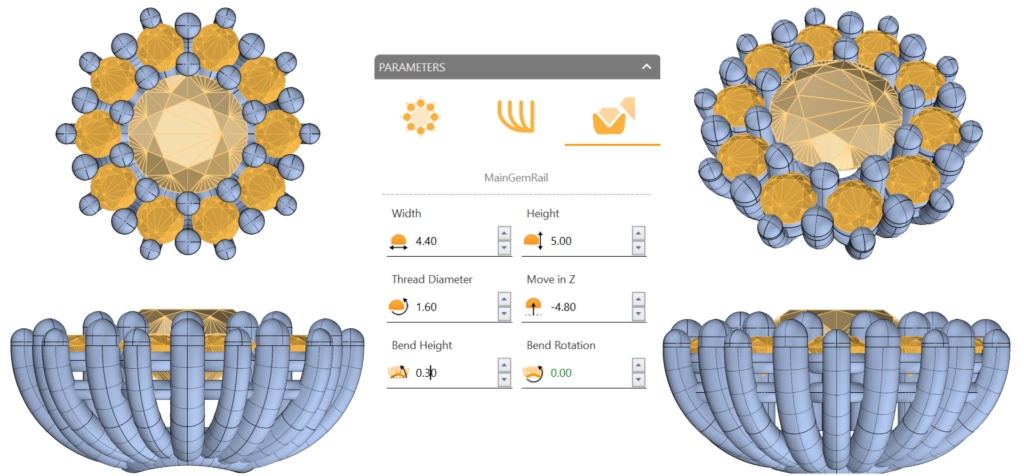 The Bend Height is especially important because it ensures the rail follows the curve of the ring’s inner side. This gives our design a seamless, comfortable fit.