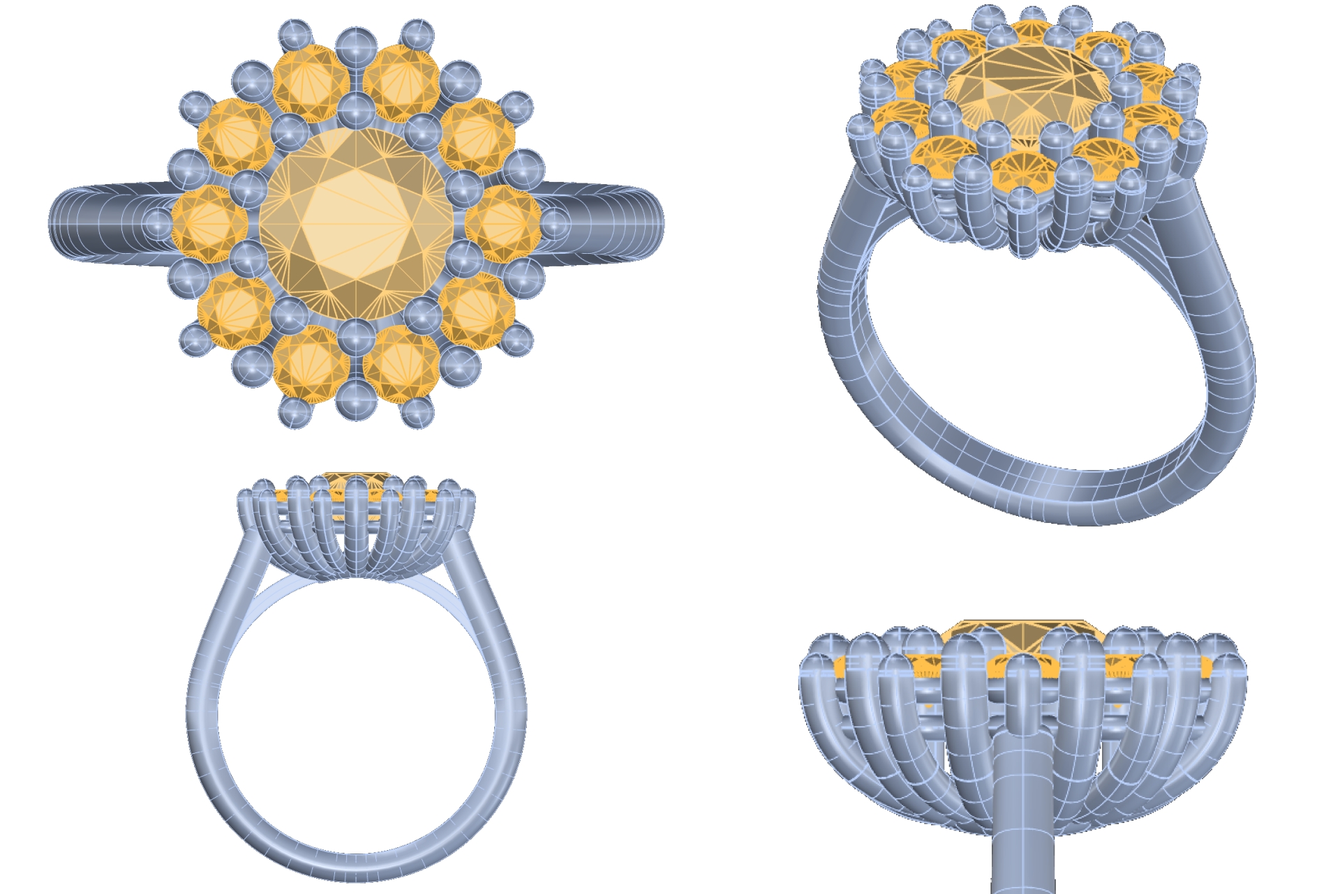 We set the bridge diameter to 3.75 mm to securely support the cluster base. This final adjustment ensures that the cluster is stable and well-balanced on the ring.