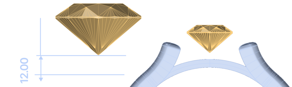 Next, place a 0.36ct round diamond at the center. Use the Gumball tool to adjust its position precisely, ensuring a harmonious setting within the shank.