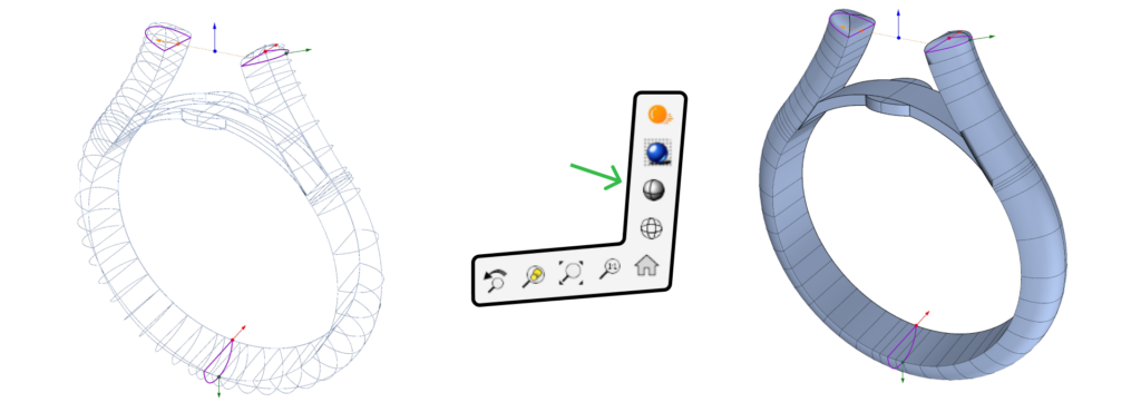 Begin with the shank, using the cathedral command to set the foundational shape. Switch to Shaded Display Mode for clear visibility, then adjust the ring’s profile to add your personal touch. Key measurements will include the top and bottom widths and heights for a balanced structure.