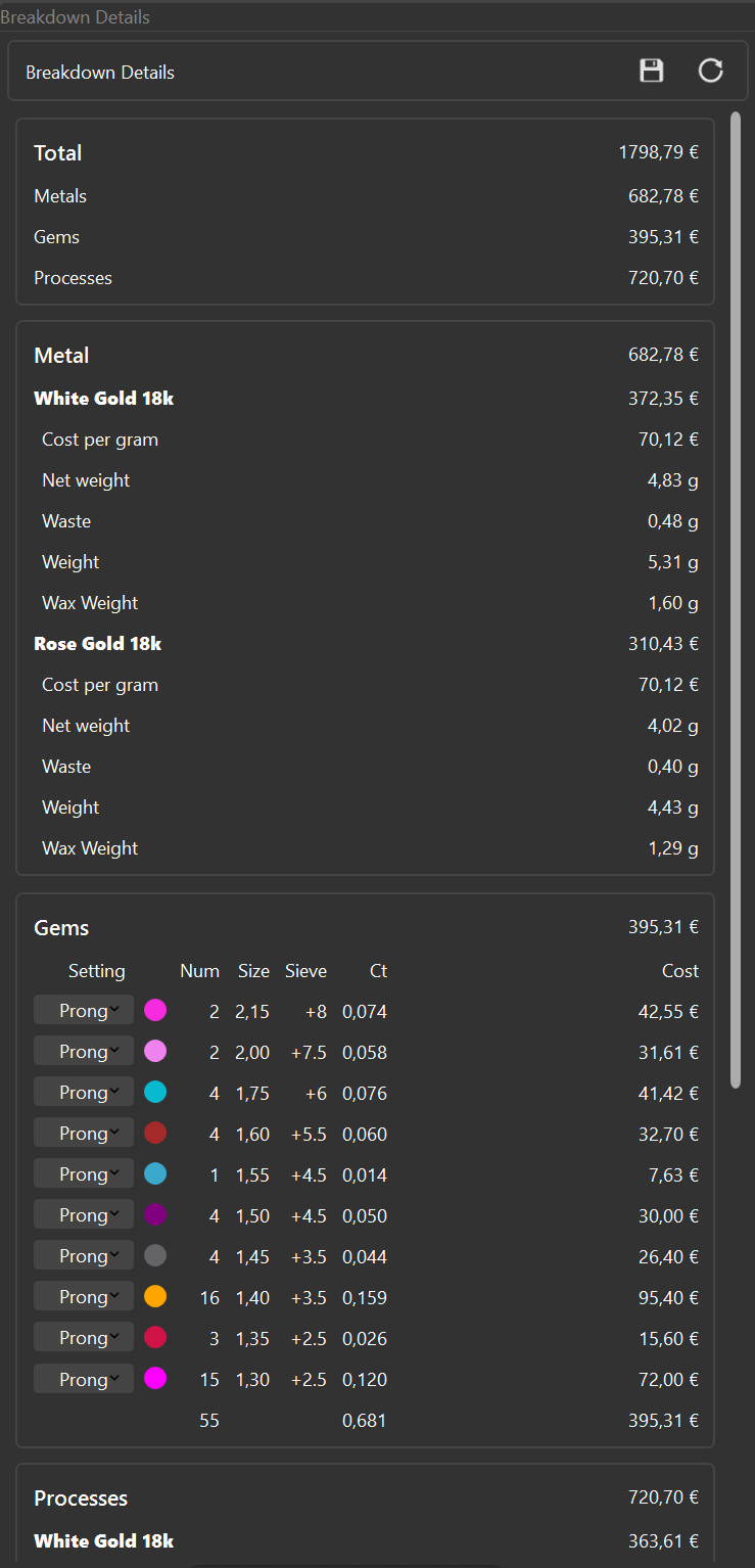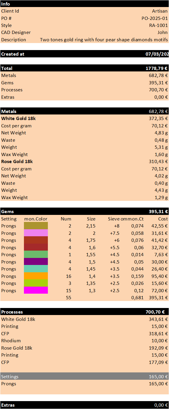 With the **Breakdown Details Panel**, cost calculations become **fast, precise, and effortless**, allowing you to focus on what truly matters: **designing and producing high-quality pieces**.